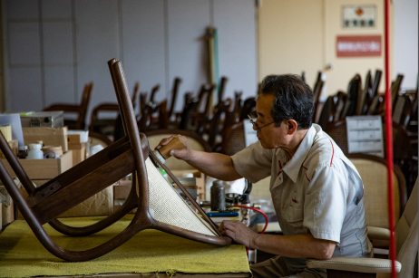 カリモクグループでは、熟練の職人が長年培ってきた技術を若手に継承するとともに、常に新しい技術や知識を取り入れることで、品質向上を目指しています。また、長年培ってきた経験をもとに良質な素材を厳選し、その個性を最大限に引き出す努力を続けています。さらに、各工程での厳格な検査や、独自の厳しい品質基準「KGIS」を遵守するなど、強い責任感を持ってものづくりに取り組み、高い品質を維持しています。